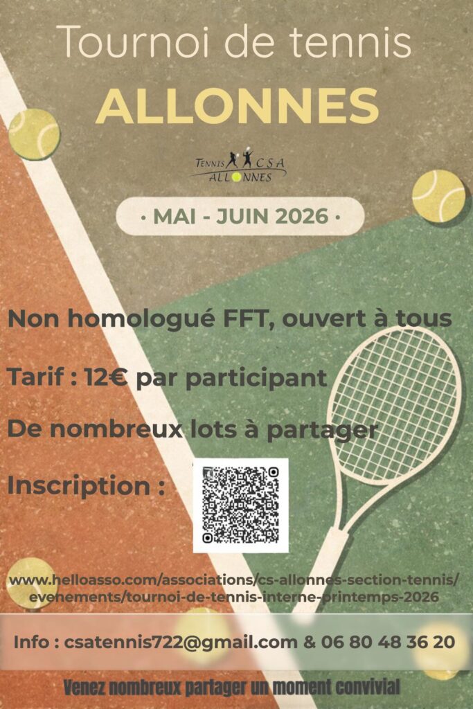 Plus d'informations par téléphone (06 80 48 36 20) ou email (csatennis722@gmail.com).