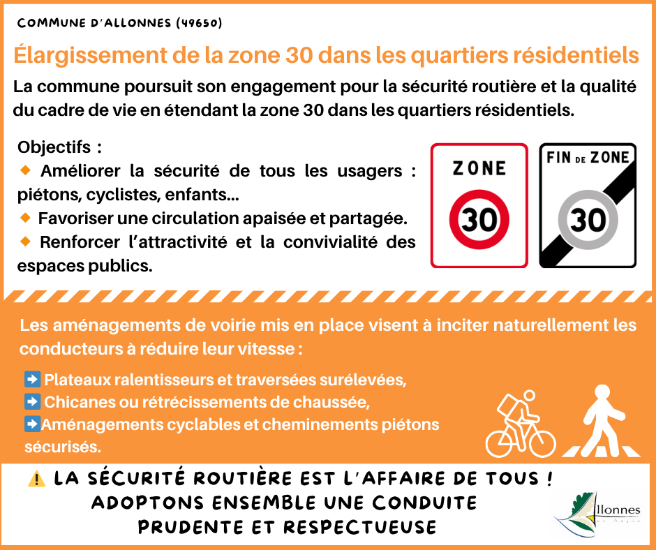 La commune poursuit son engagement pour la sécurité routière et la qualité du cadre de vie en étendant la zone 30 dans les quartiers résidentiels.