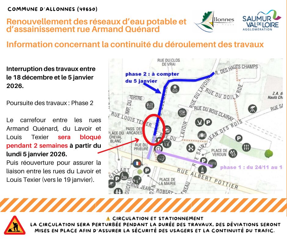 Information concernant la continuité du déroulement des travaux rue Armand Quénard