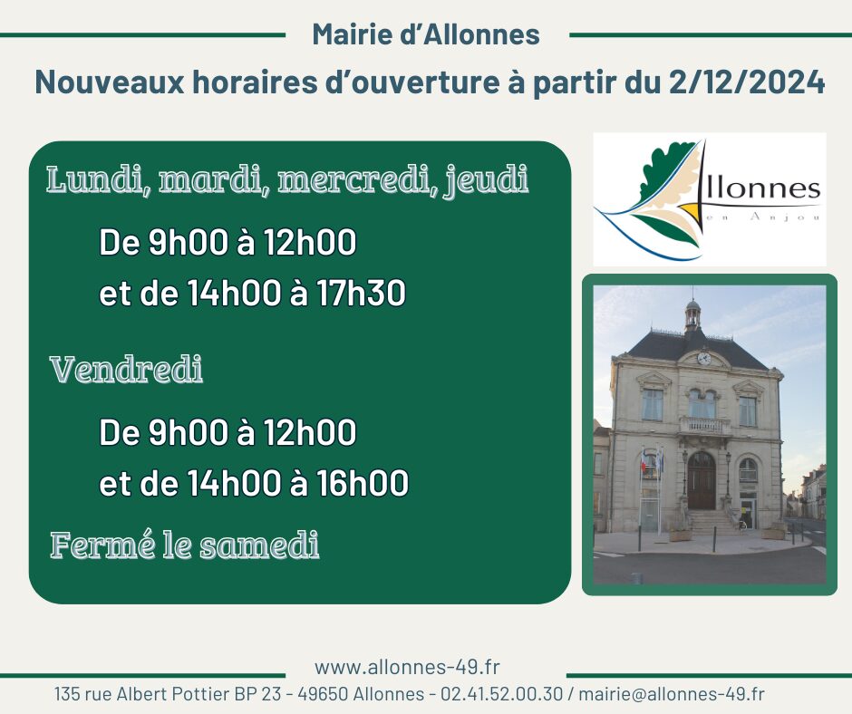 - Nouveaux horaires d’ouverture de la Mairie