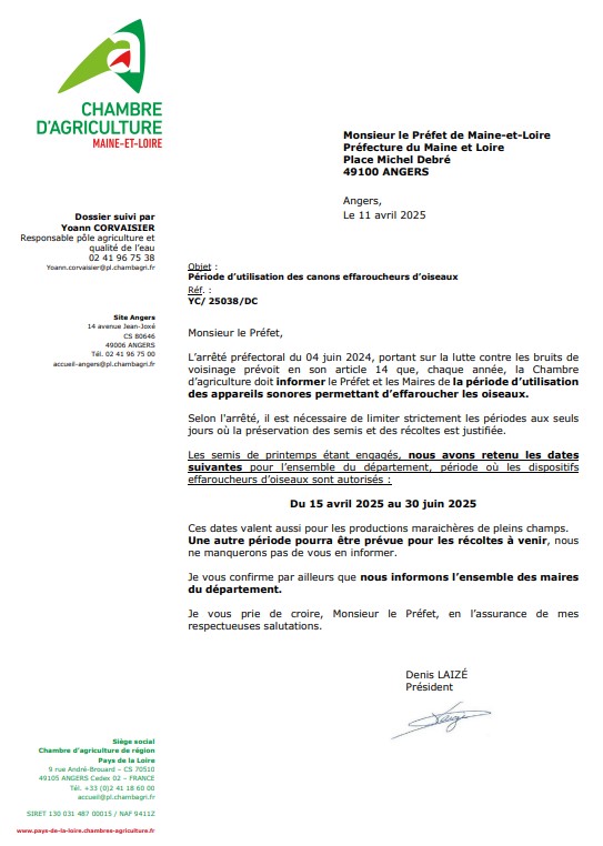 - Période d’utilisation des canons effaroucheurs d’oiseaux