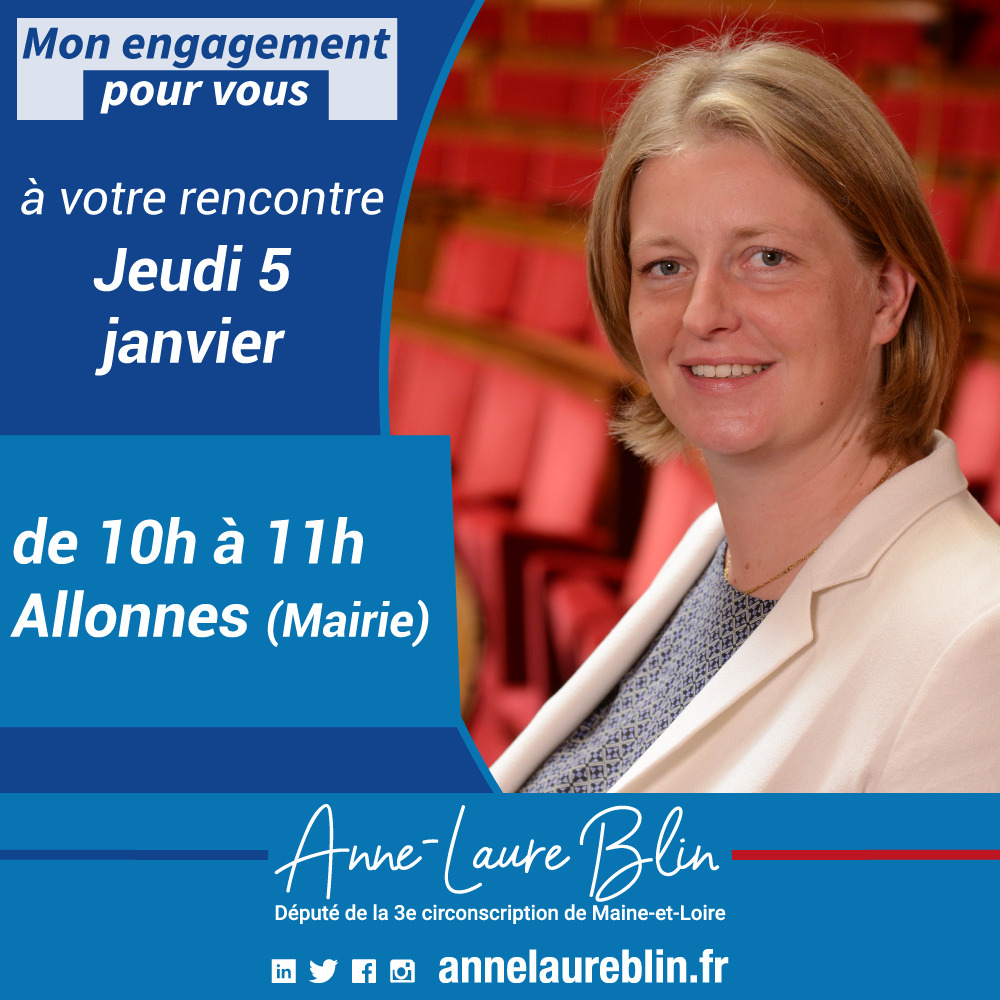 Jeudi 5 janvier de 10h00 à 11h00 Permanence à la Mairie d'Allonnes du Député de Maine-et-Loire Anne-Laure BLIN