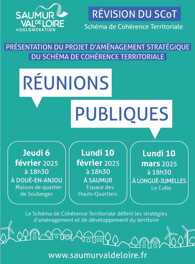 La Communauté d’Agglomération Saumur Val de Loire organise donc des réunions publiques pour permettre au grand public de s'informer et de contribuer sur le projet de territoire de la révision :