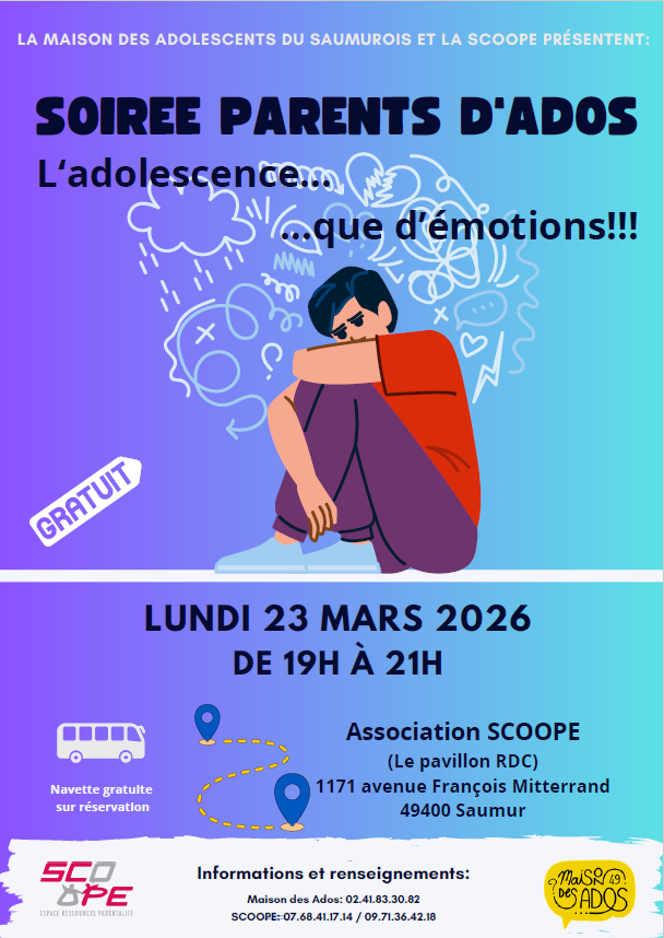 La Maison des Ados 49 et l’Espace Parentalité de la SCOOPE vous invitent à une nouvelle soirée d’échanges dédiée aux parents d’adolescents.