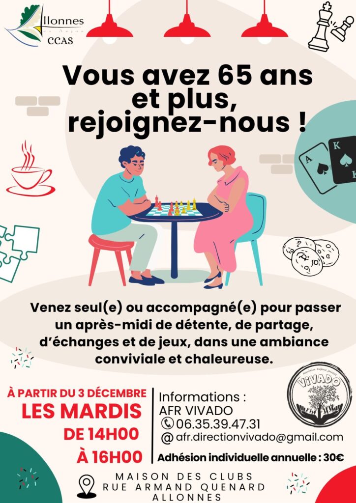 Venez seul(e) ou accompagné(e) pour passer un après-midi de détente, de partage, d’échanges et de jeux, dans une ambiance conviviale et chaleureuse.