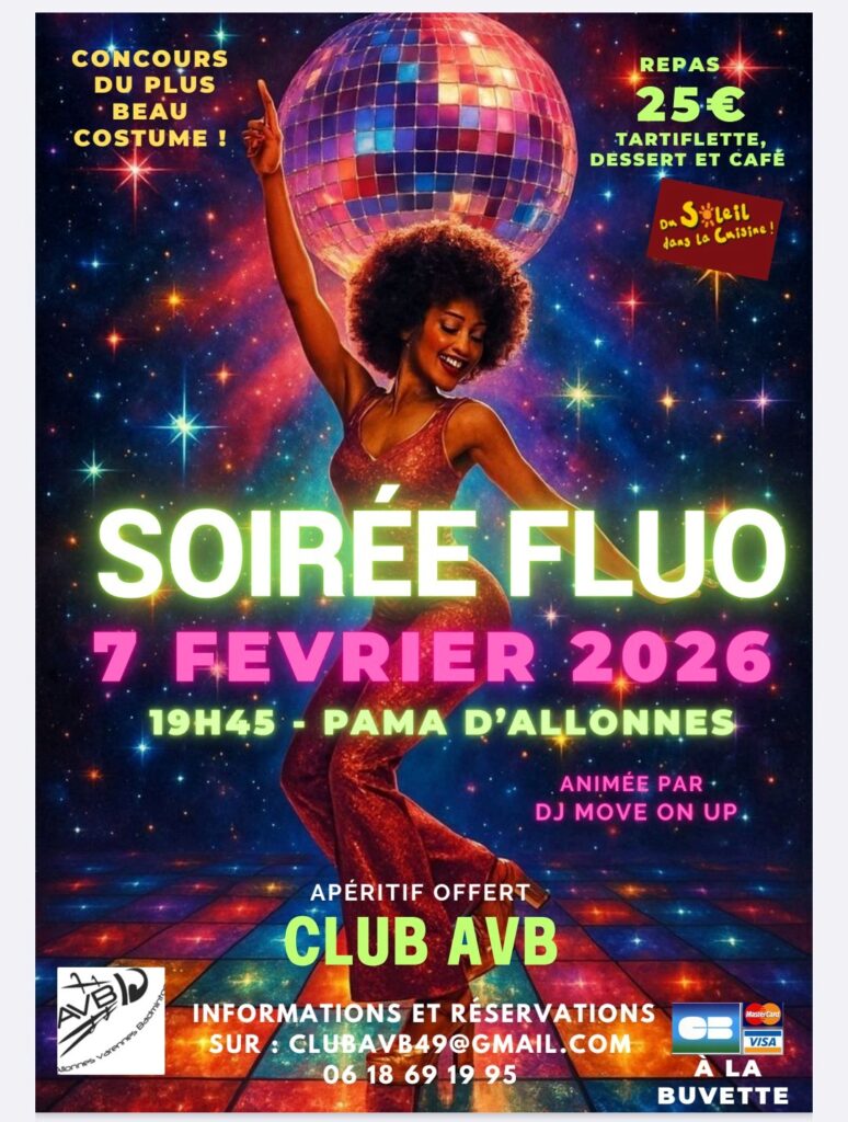 Notre club AVB organise sa cultissime soirée Fluo le samedi 7 février 2026 au PAMA d'Allonnes salle GALAXIE