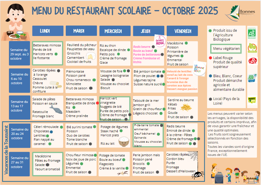 Enfin, des animations festives viennent rythmer l’année, avec des menus spéciaux pour Halloween, Noël ou encore le Carnaval. Ces moments de partage sont très attendus par les enfants et contribuent à créer une ambiance chaleureuse et conviviale au sein du restaurant scolaire.