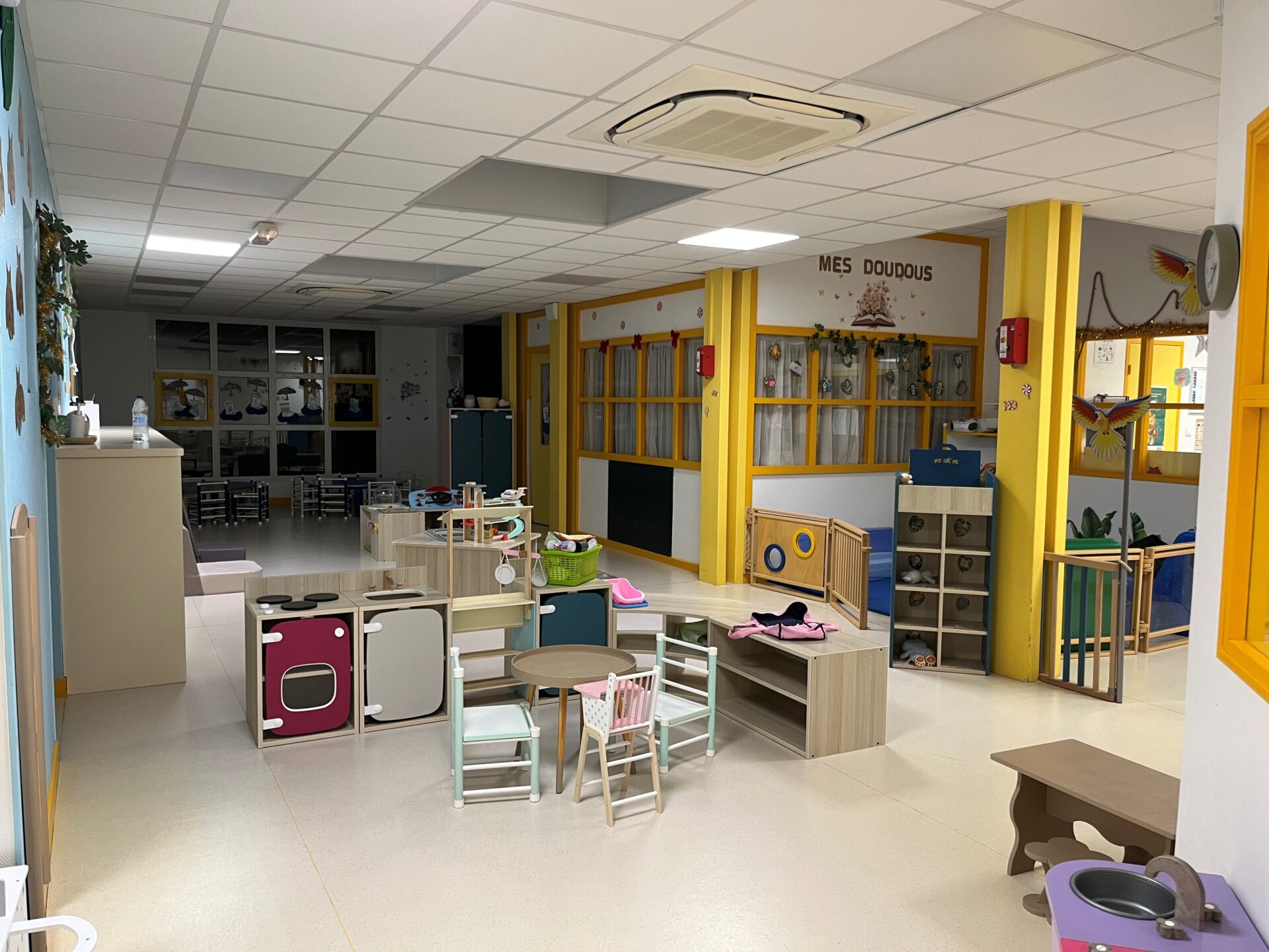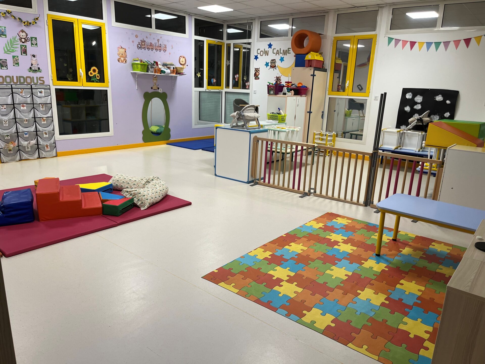 Les enfants y sont accueillis dans trois espaces de vie différents équipés en fonction de leurs âges et de leurs besoins. Sont à la disposition des enfants un coin bibliothèque/motricité et de nombreux jeux d’éveil.